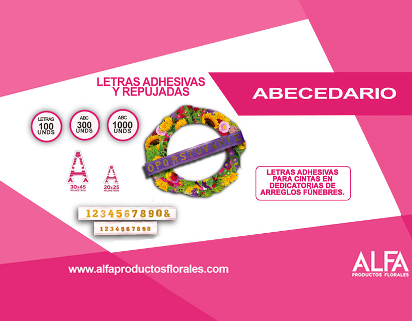 Etiquetas: Alfa productos florales, letras para coronas, cintas de coronas fúnebres, coronas funerarias, cinta funeraria, coronas fúnebres, letras adhesivas, frases de pésame, letras repujadas, letras y palabras adhesivas para coronas, condolencias, cinta ramo fúnebre, corona de flores, cintas floristería, cinta funeraria conmemorativa, letras para coches fúnebres, arreglos florales, arreglos florales fúnebres, cintas fúnebres, cintas para reinas, bandas para reina, coronas en espuma, aros en icopor, coronas en icopor, aros fúnebres, aro para corona fúnebre, accesorios funerarios.